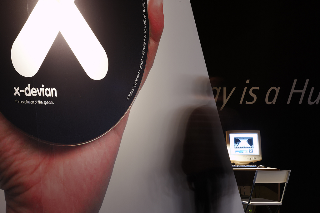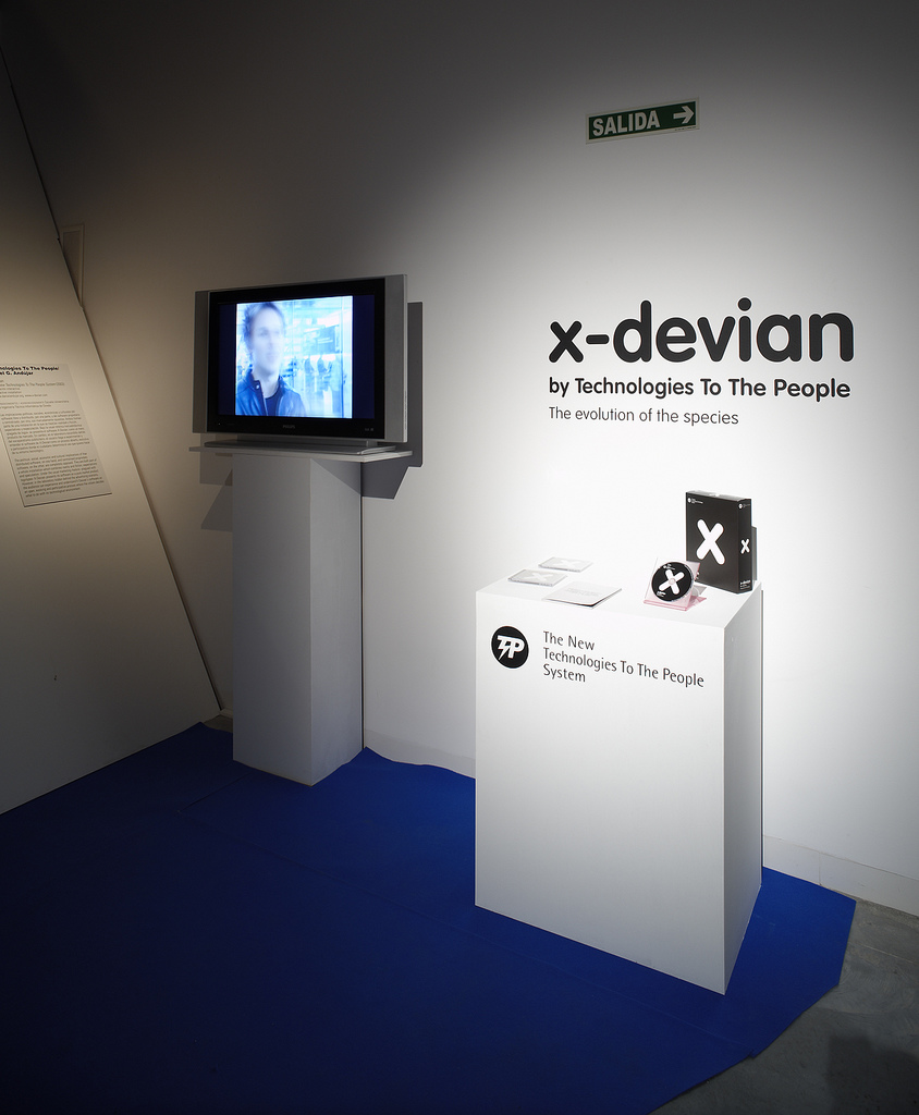 But perhaps such festivals are not the right context for X-Devian, just as it might be a misunderstanding to comprehend the work in relation to ”technological art”. For even though the work involves and is about technology, its focus is the cultural discourse in which technology takes part. Andujar works in the conceptual tradition of the 60s and 70s, where formal categories and problematics are secondary in relation to the societal themes and contexts that a work contains and is part of. It is a tradition that is not specifically technological – or even media specific – but comprehends art as a general conceptual capacity to give form to analytical, critical, and speculative discourses.